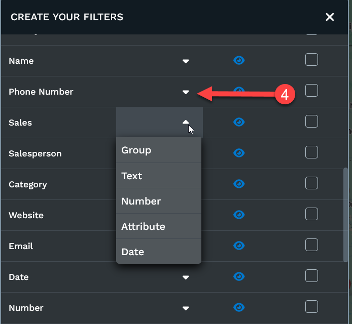 Step 4: Clicking on the pull down next to the column you want to be able to filter.