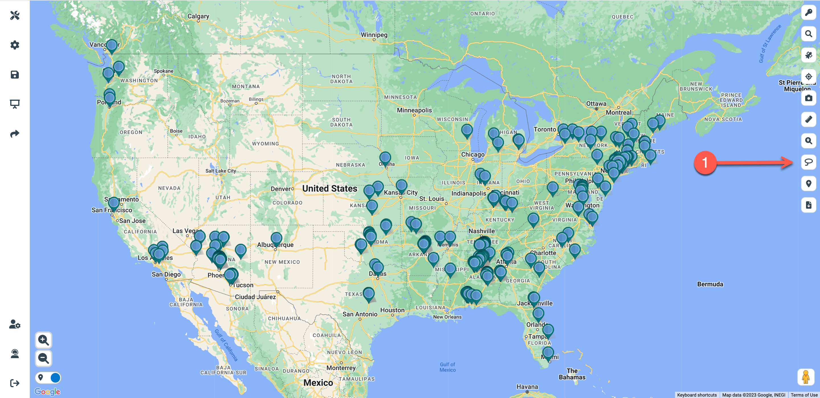 Step 1: Engage the Lasso Tool by clicking the lasso icon on the right side of your map.