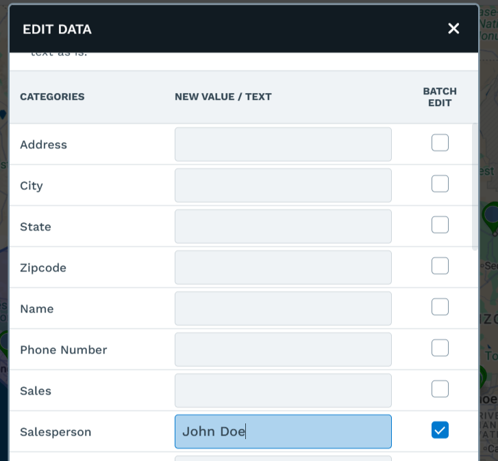 In the examples below all the Markers will now have a Salesperson of John Doe.