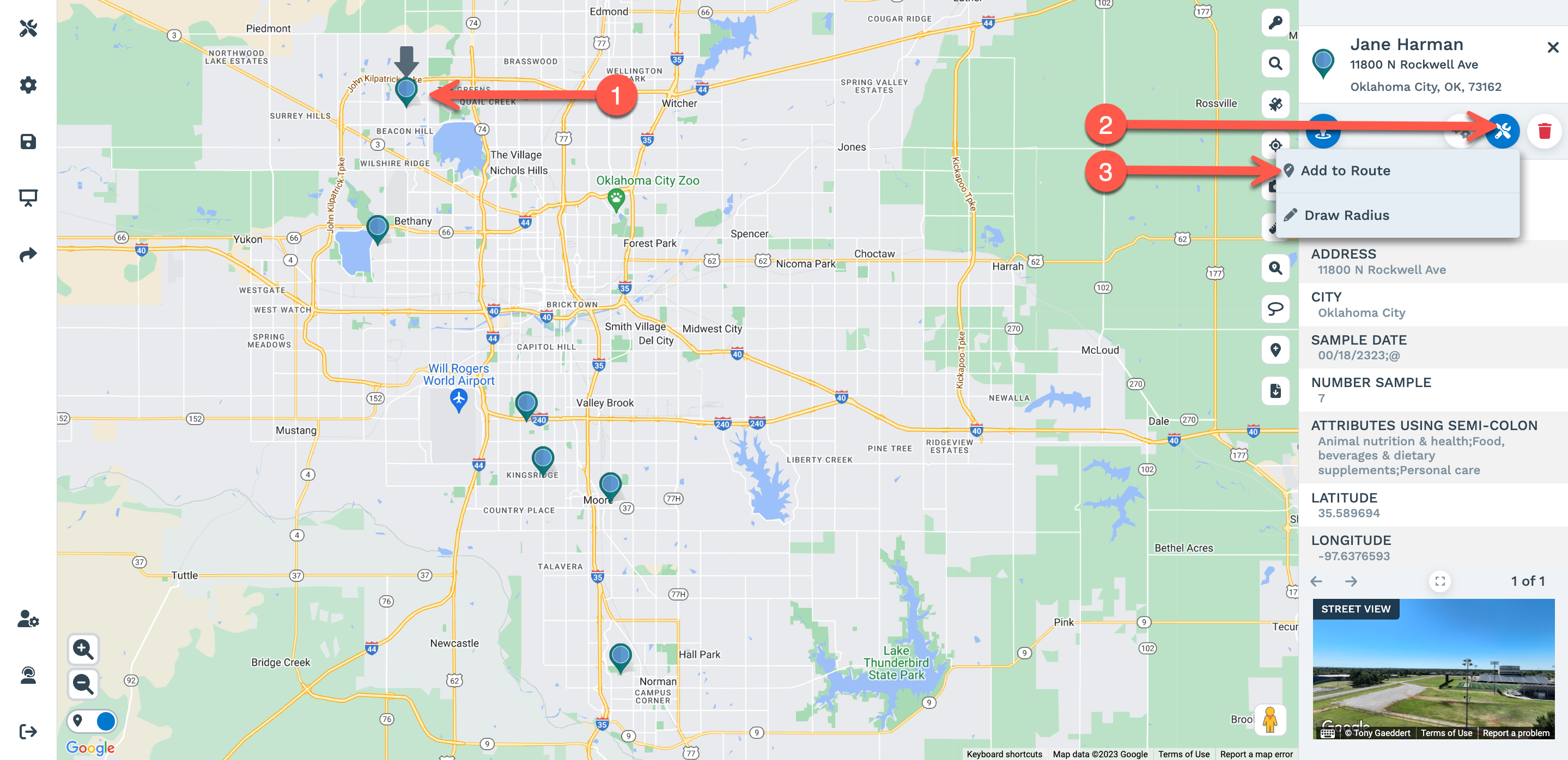 Alternatively, you can use steps 1 to 3 to add additional locations to the route, and they will be added to the location list on this tool panel.