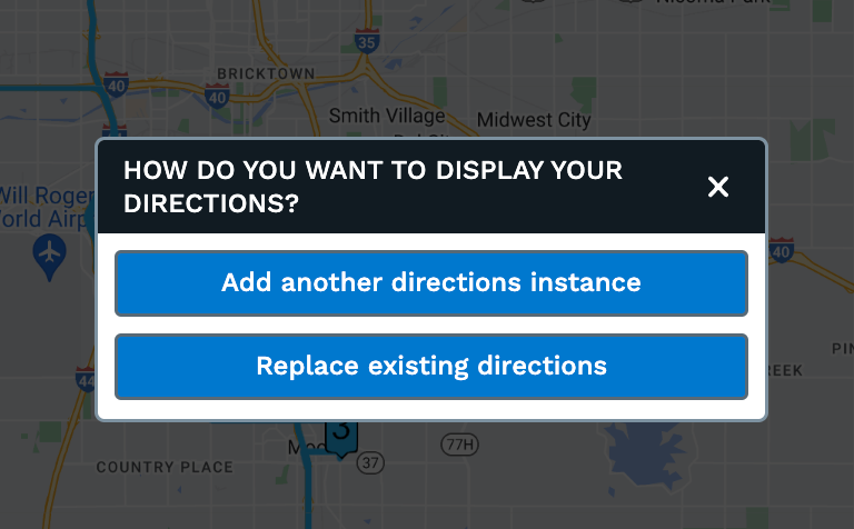 Step 3: Click on 'Add another directions instance' to generate the second set of directions for your locations in the same map view.