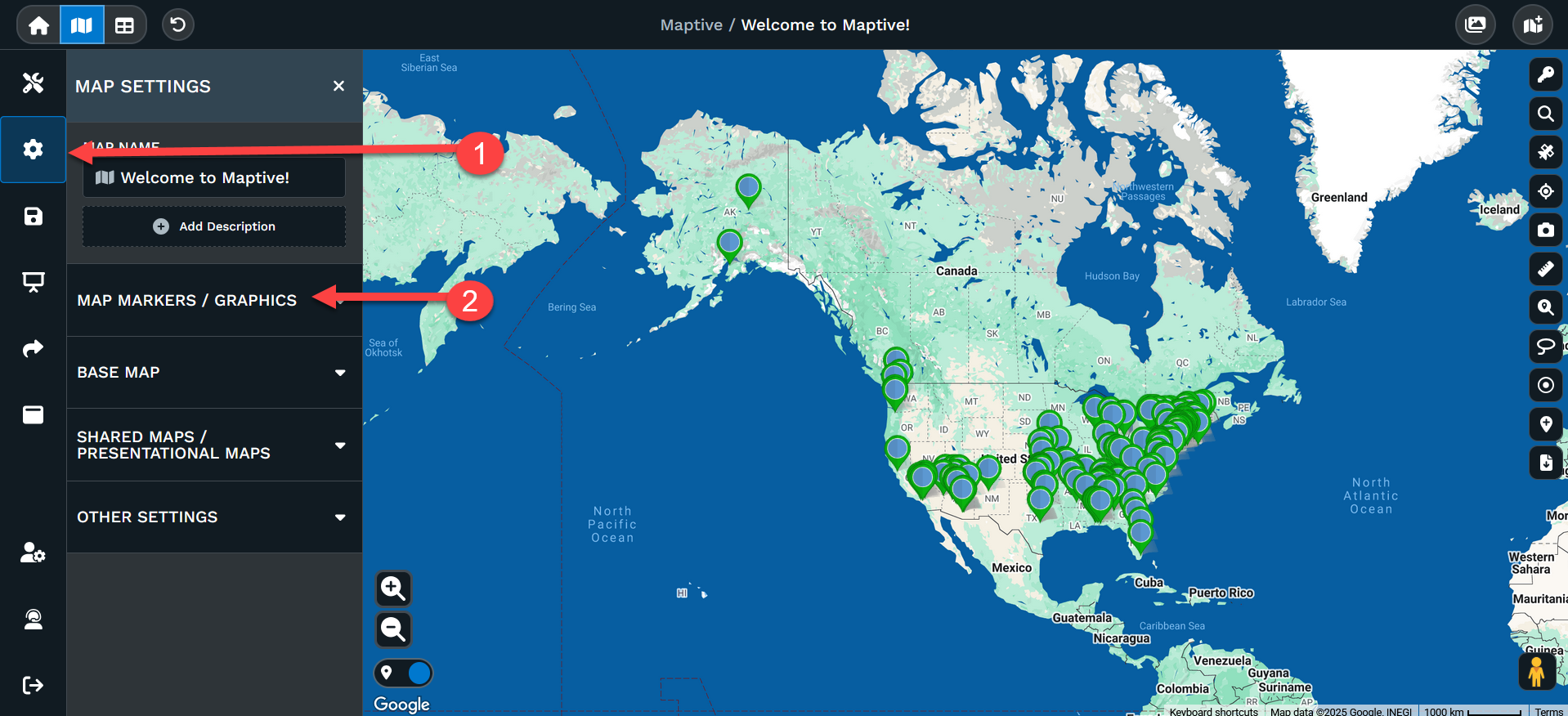Step 1: Click the gears on the top left side of the map opening Map Settings.