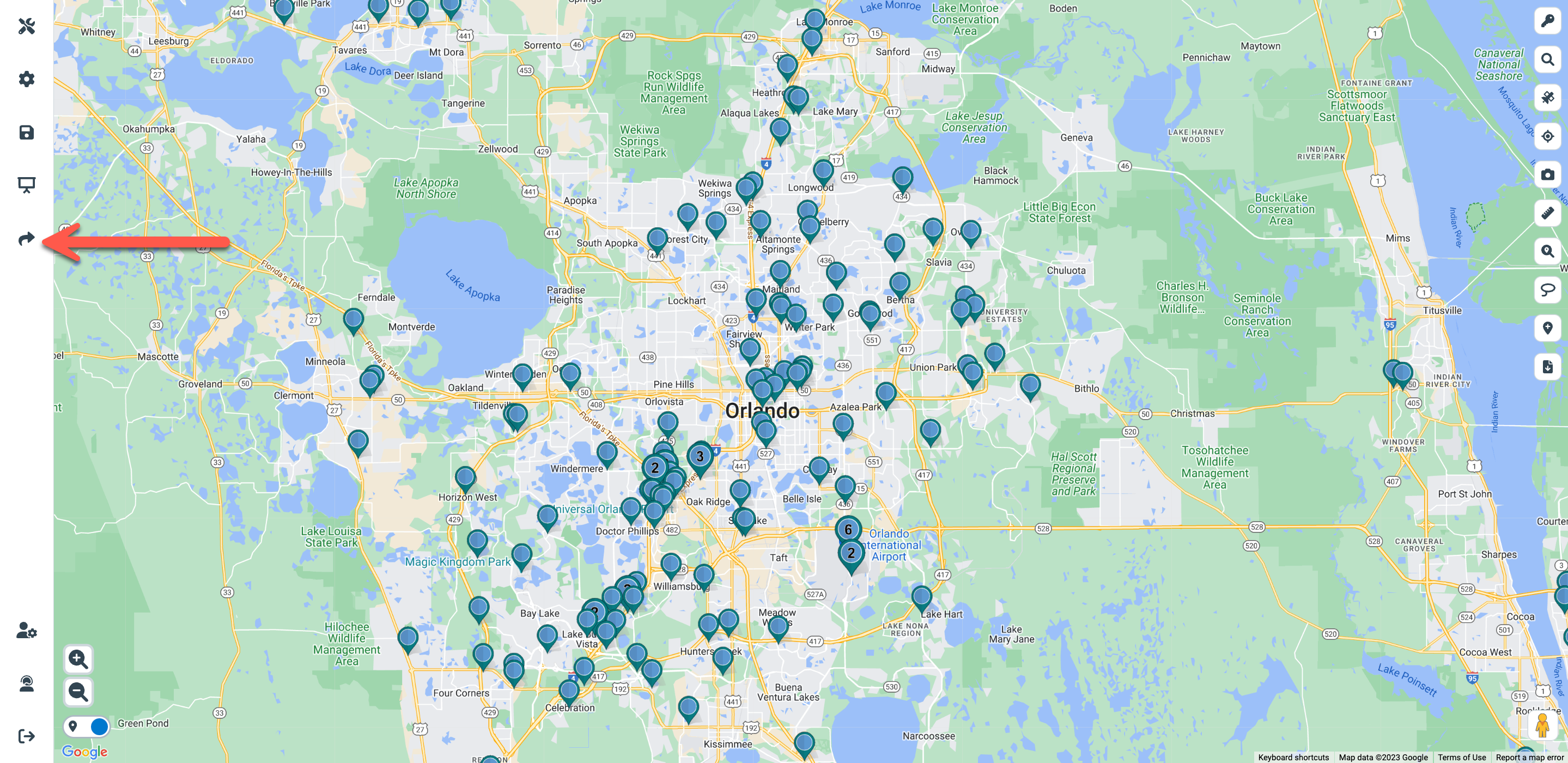 Step 2: Locate and click on the Share icon found on the left-hand column on your map: