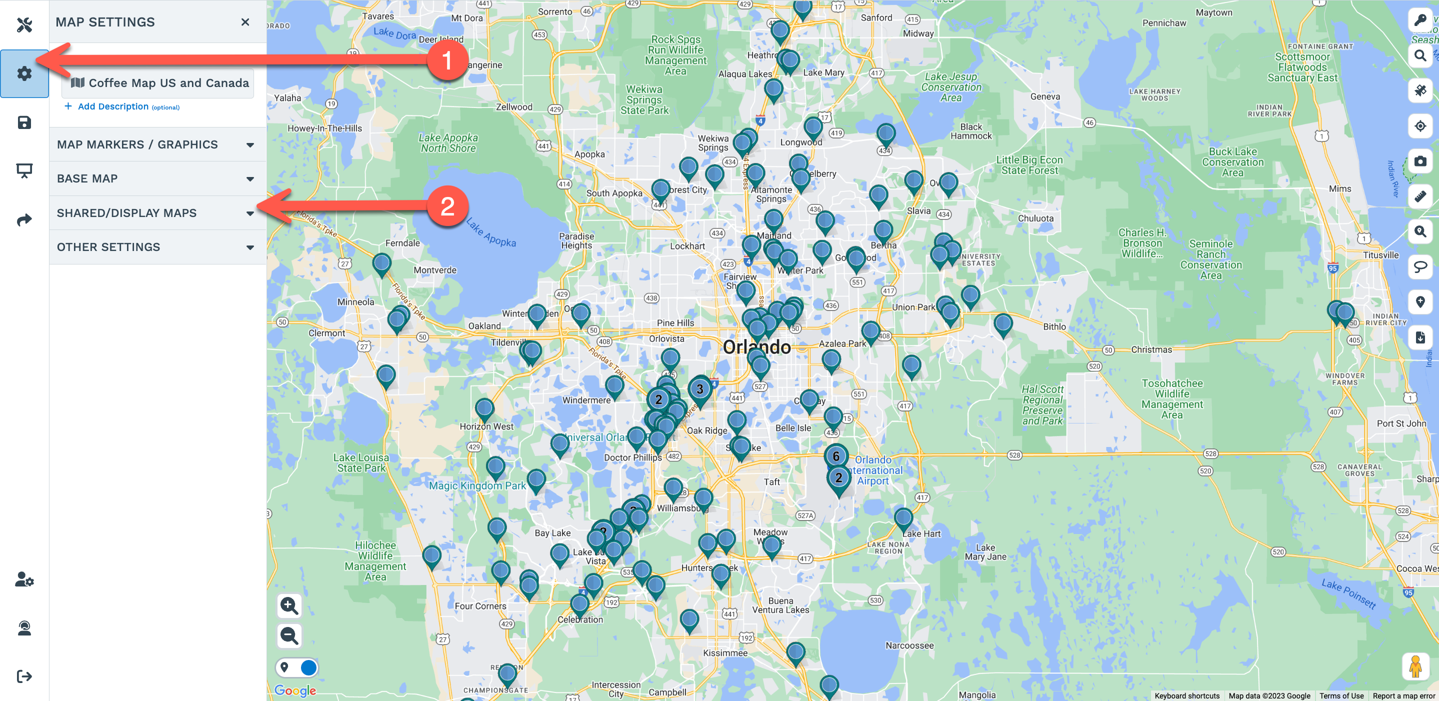 Step 2: Click on the Shared/Display Maps from the menu options.