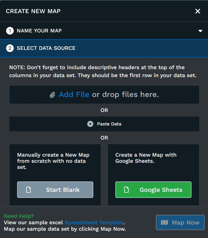 Next, Your Data: Upload your data into Maptive. To do so, you have a few options: