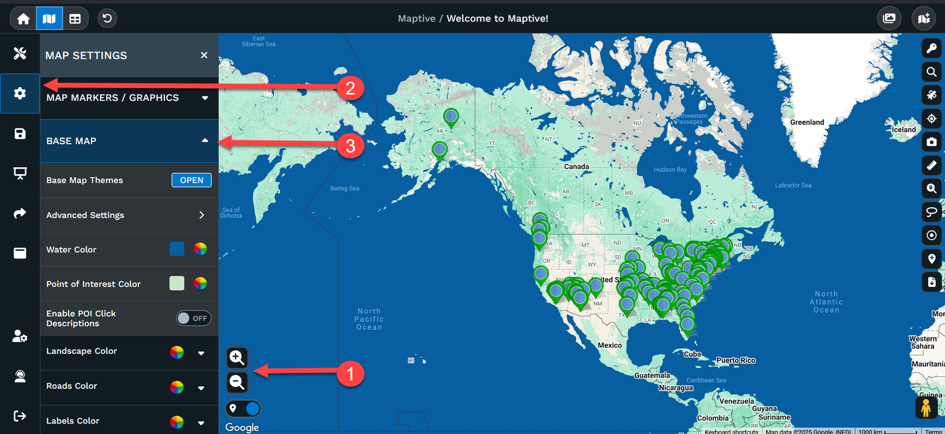 Step 2: Click the gear on the top left side of your map opening Map Settings.