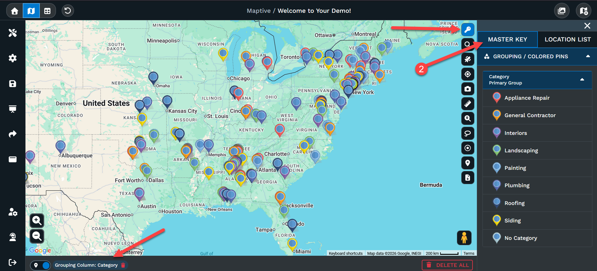 Step 2: Once you click the key the box on the right will open onto the tab called Master Key. If you are using your Grouping Tool to see your markers in different colors, the Master Key will show you those groups.