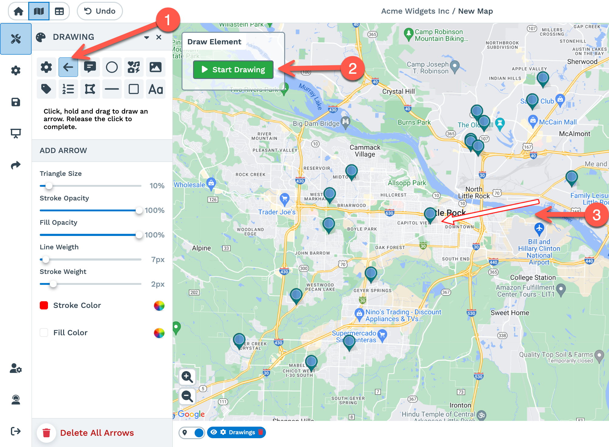 2. Draw Arrow: Allows you to draw arrows on your map.