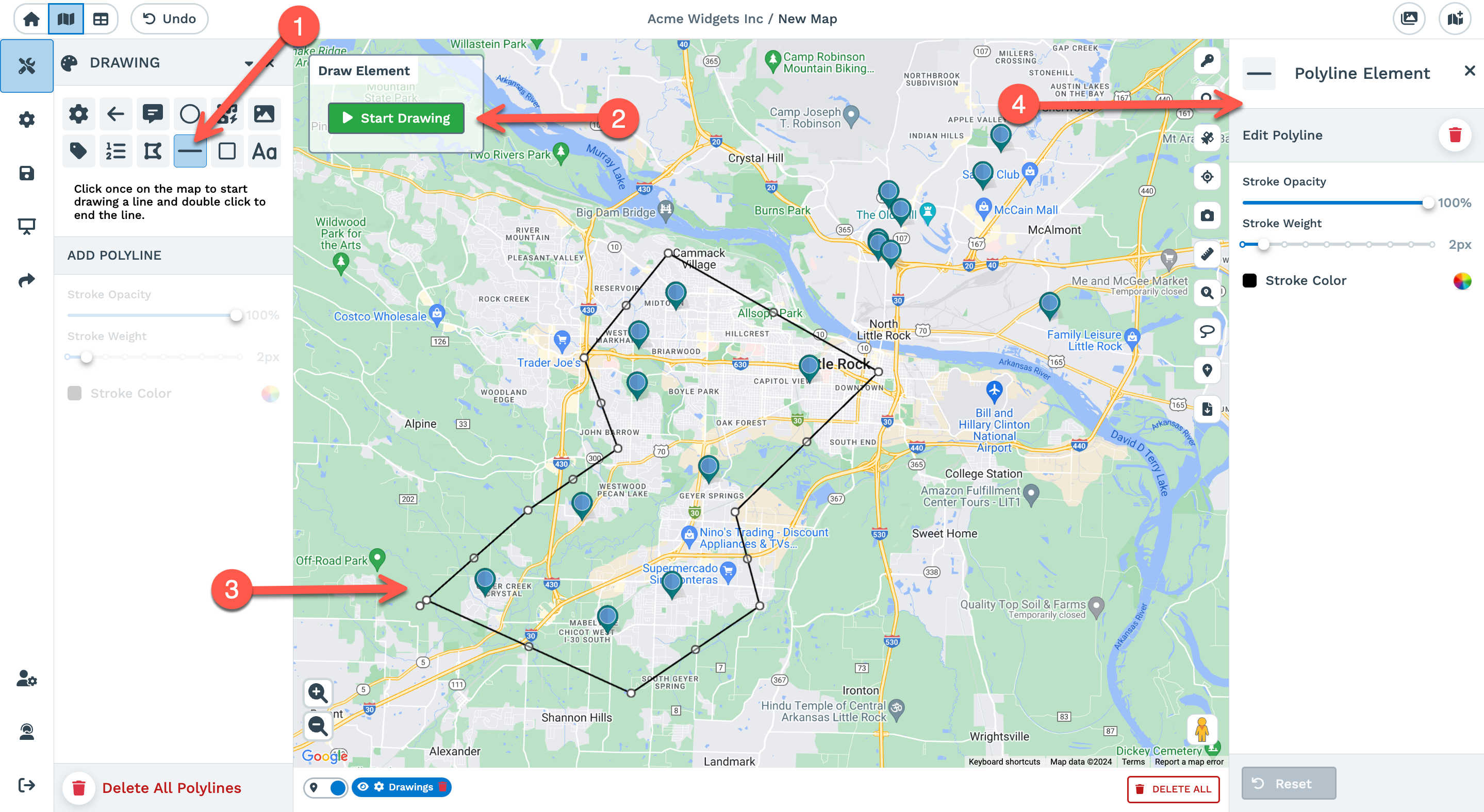 10. Draw Polyline: Allows you to draw lines on your map.