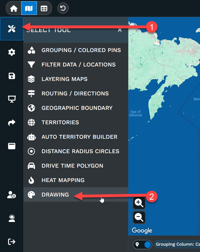 The Drawing Tool offers a convenient way to add information and visual features to your map quickly. To use the Drawing Tool, follow these steps: