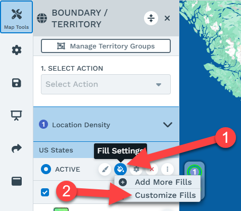 Step 2: Click Customize Fills in the submenu. This will open a new modal.