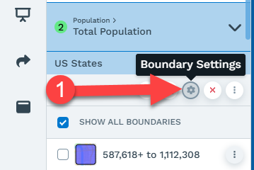 Scroll down to the boundary set you want to change the settings for and click on the boundary settings icon (1).