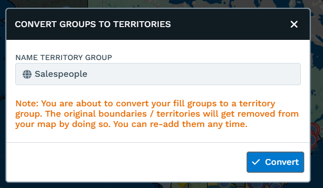 Step 4: Name your territory Group, and click "Convert"
